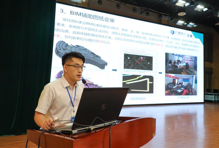 覃振華代表公司致歡迎詞。他表示,冶建公司一直大力推廣BIM技術,特別是2018年以來,建立公司、分公司、項目部三級推廣模式,逐層抓好責任落實,企業(yè)生產管理有了新改變、新收獲。先后發(fā)布了BIM系列教程,讓員工可以自學建模技術,加速人才培養(yǎng)。編寫了《廣西建工冶建BIM建模技術標準》,規(guī)范建模方式、方法與流程,為BIM技術落地應用奠定了扎實基礎。BIM技術應用落地在項目建設過程中,取得了有效控制施工安排、減少返工、控制成本、創(chuàng)造綠色環(huán)保等良好的經濟和社會效益。兩年來,公司獲得了國家級BIM獎項8項、區(qū)級BIM獎項5項。