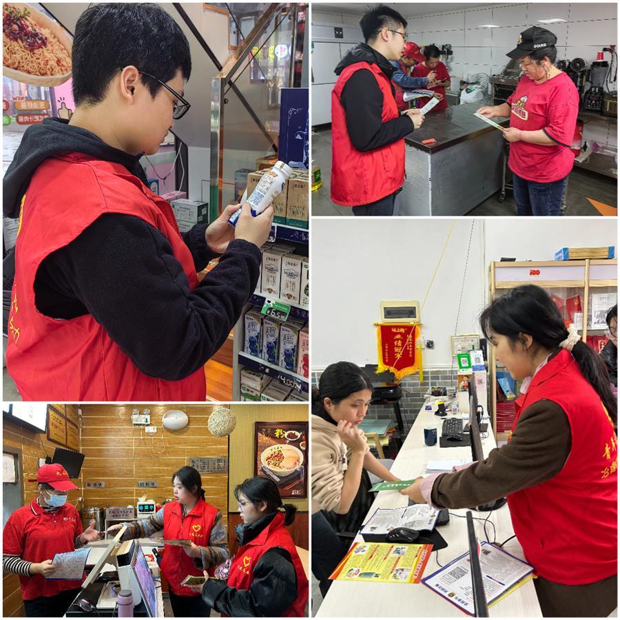 活動過程中,志愿服務(wù)隊分成三組,深入臨街商鋪現(xiàn)場為居民講解消防安全、食品安全、應(yīng)急避險相關(guān)知識,并發(fā)放宣傳材料。