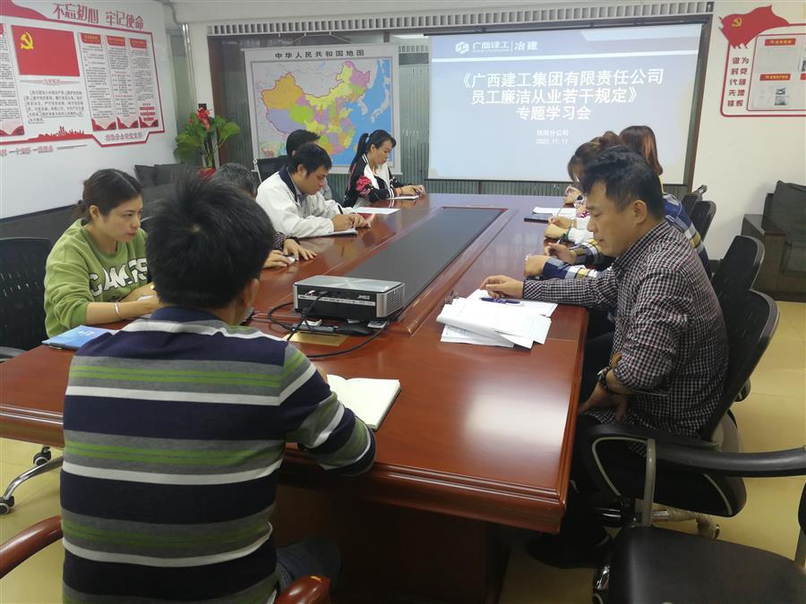 近日,基礎分公司黨支部組織開展《廣西建工集團有限責任公司員工廉潔從業(yè)若干規(guī)定》(以下簡稱《規(guī)定》)專題學習。