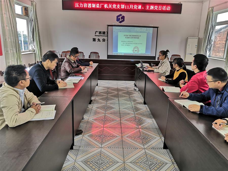 近日,壓力容器制造廠機關(guān)黨支部組織全體黨員學習《廣西建工集團有限責任公司員工廉潔從業(yè)若干規(guī)定》(以下簡稱《規(guī)定》)。
